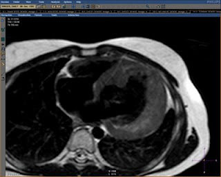 艾米丽在2007年6月被诊断出患有肥厚性心肌病(什么是肥厚性心肌),虽然大部分的肥厚性心肌病类型都是较为稳定的,但是艾米丽的不同,随时可能心脏衰竭而亡。下图就是艾米丽的心脏核磁共振成像: