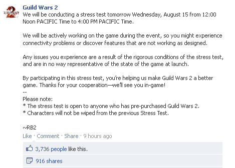 - (2012-08-21) 激战2公布22日凌晨压力测试