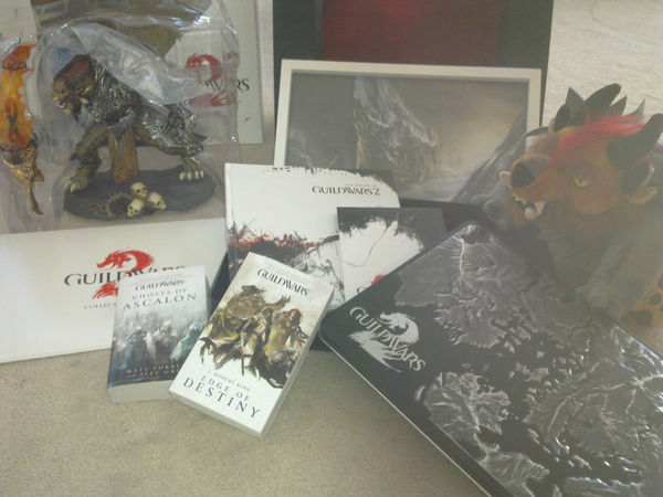 继上次的开箱视频之后,已经有玩家收到了激战2的典藏包,这位叫killerc8的网友分享了一组开箱照片,其中包括了一个超大手办,一个精美的铁盒子(里面原来放了一张原画,用相框裱起来的),激战2原画册、游戏原声CD,实在是让人羡慕嫉妒恨啊!一起来看看吧!