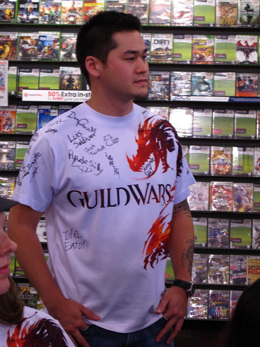 这次很幸运的参加到了激战2官方ArenaNet在9月1号位于洛杉矶举行的庆典活动,下面把我的见闻分享给大家。活动在当地时间下午1点举行,我也在中午11点半出发前往离我住的地方50分钟车程的西好莱坞的GameStop。虽然我提前了1个半小时出发但是最后快到的时候还是在101高速公路上堵住了•••到达的时候已经是1点30了,人挺多的气氛很好。