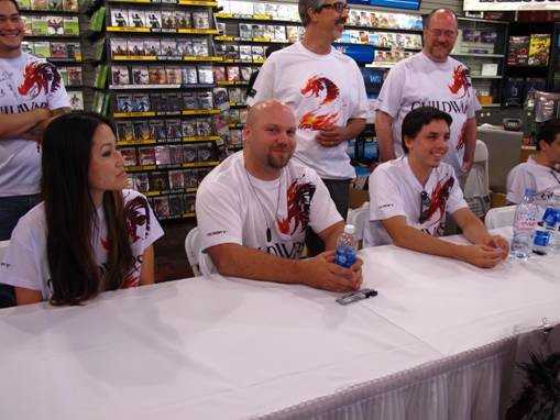 很快我也拿到了我的签名海报并且我的游戏书和游戏外壳都签上了名字,顺手再收下T恤,还额外获得了一张可以再游戏里越换绝版道具的卡。接下来就是第二个环节,提问时间啦。他们称之为Q&A(问题和回答)。