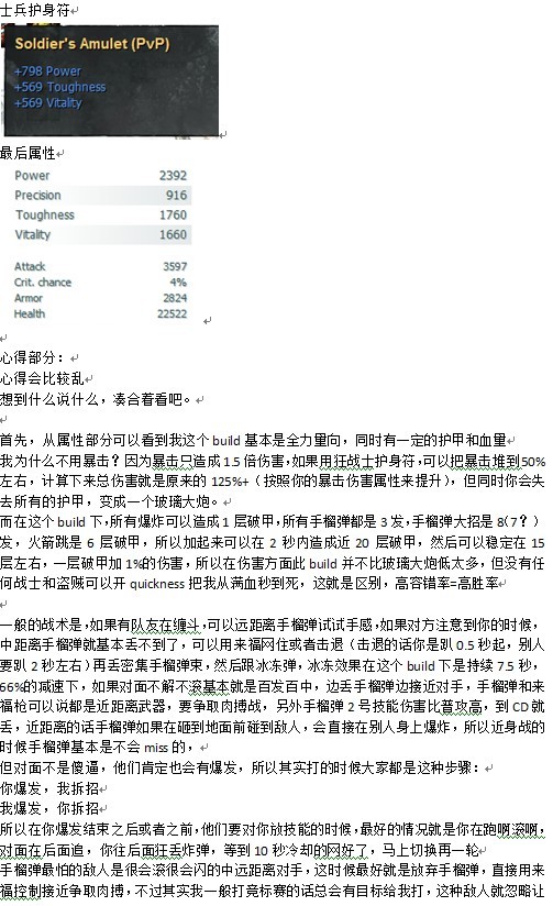 激战2【工程sPvP build】power手榴弹工程build,团队向。