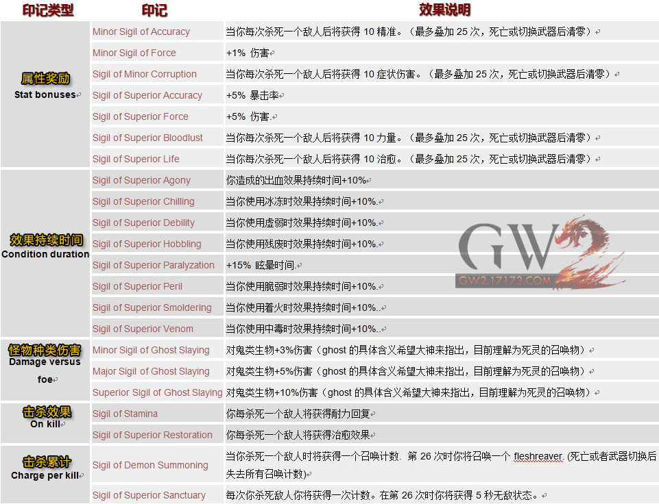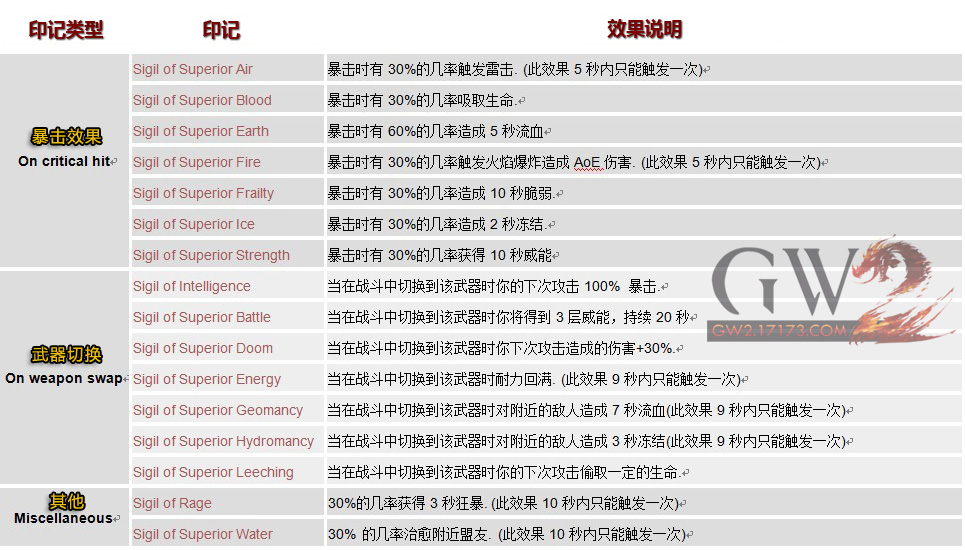简易翻译了一下《激战2》PVP中各武器印记的效果。
