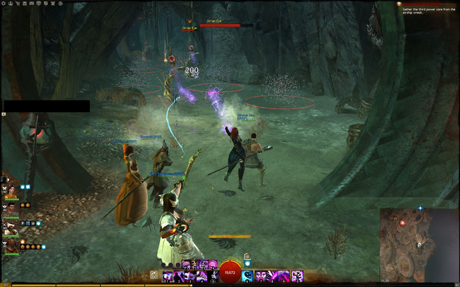 之后嘴会吃掉已经造成伤害的火球,并且停止漩涡和跺脚攻击。所以为了避免被火球砸到,需要一个人专门注意嘴的状态,然后告诉全队人员。我们发现出现这种情况的时候,跑到BOSS背后去是一个不错的做法。如果我们的HP都太低了的话,就分成两个队吧。一个前面,一个在后面。