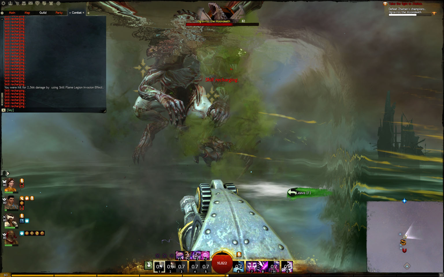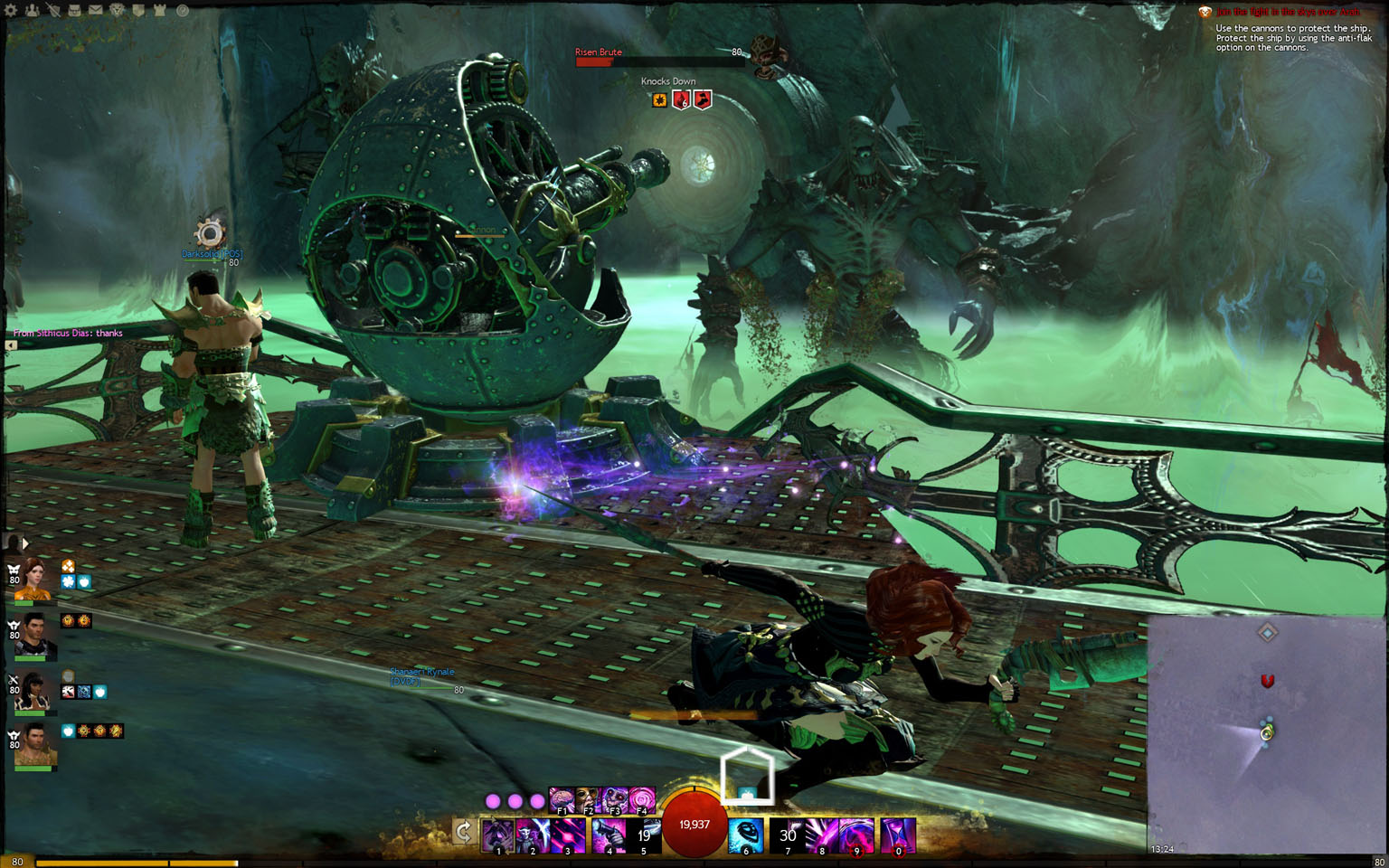先选择两个玩家来清理掉甲板上的小怪(推荐学者类型),当龙接近的时候近战上炮台。你无法锁定目标,所以瞄准以后使用炮塔技能狠K精英龙吧!最终,精英龙会倒在高科技的脚下。