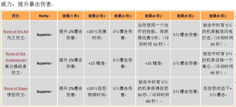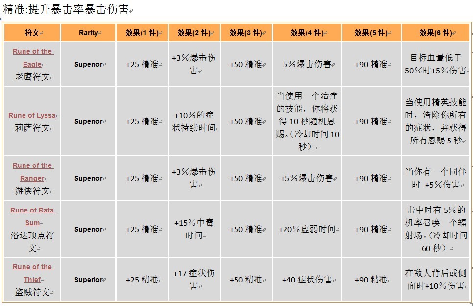 《激战2》PVP武器装备符文组件中文资料
