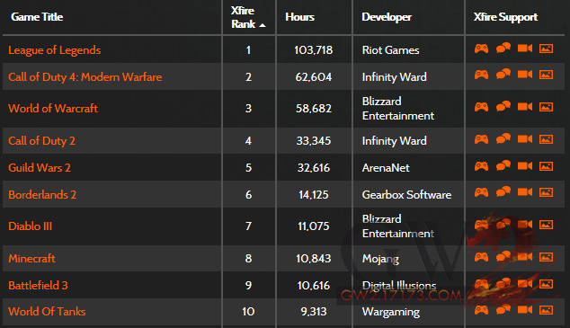 xfire排行《激战2》排名下降不及魔兽