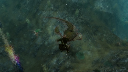 接着在水中受到了一只巨型濑尿虾的袭鸟攻击,我羞辱地将它斩杀了。