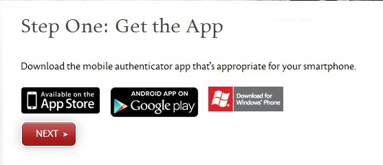 首先需要在手机中安装"Google Authenticator"这个应用,iPhone直接从APP Store搜索下载,其他系统如果找不到的话点击下图对应图标能转到下载页面。手机安装好后点击Next