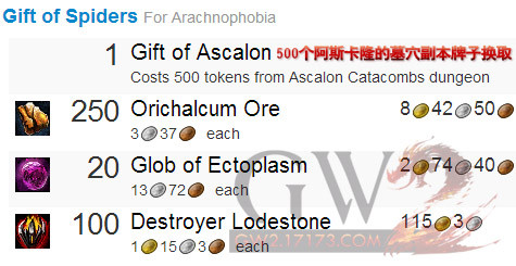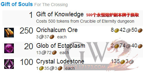 TIP:注意这些副本换取的材料(Gift of Thorns/Ascalon/Knowledge)都是账号绑定的,你无法在拍卖行购买。