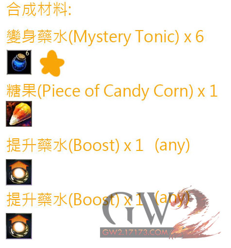 昨天我们介绍过了,官方将新增南瓜王宝箱(Mad King Chest)来增加获取万圣节套装的途径,收集合成的材料时候玩家必须要注意,变身药水有很多种类,但是南瓜王宝箱合成的材料必须是圆形的那种变身药水,切记此点以免杯具发生。