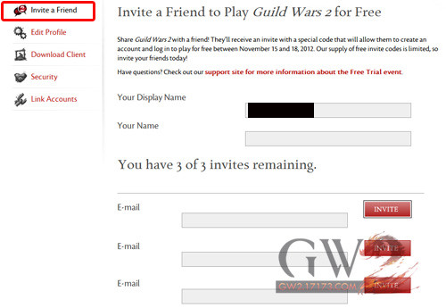 登录你的官网通行证后,你会发现account页面上多了一个选项Invite a Friend,选择Invite a Friend就可以看到邀请好友页面: