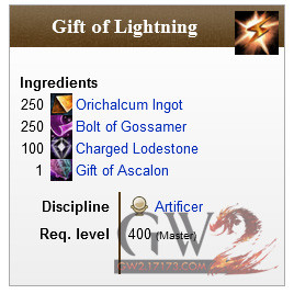- 01-17 激战2第二代永诀、优品、星域最新传奇武器配方