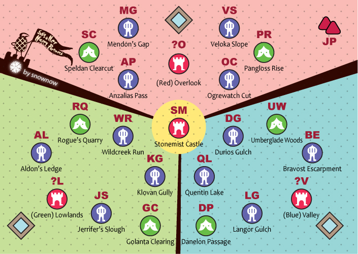 因为在打世界战场的时候,三张世界战场都不同的名字,往往被老外的缩写搞到头昏眼花的,有时候自己想用T频call暴民时,也要叫出地图看老半天才能确定自己所在地的名称,所以我就做了这份地图,可以印出来使用,有双萤幕的人也可以一边开着对照^^