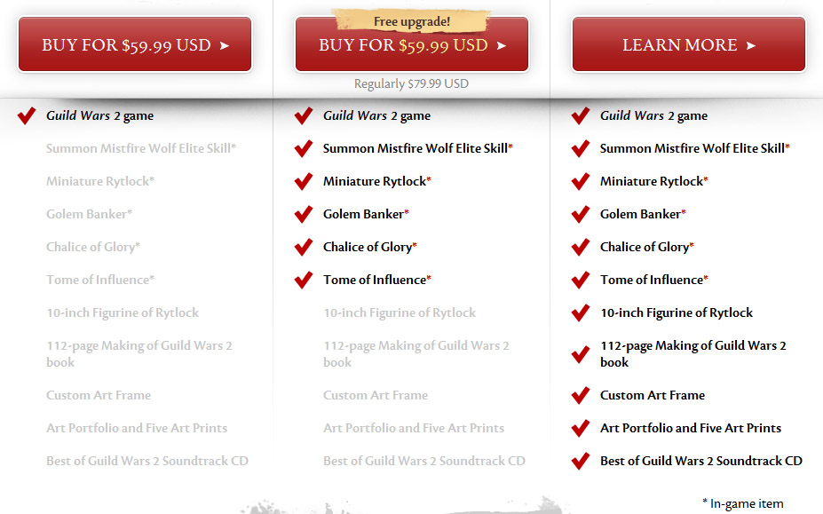 详细情况请查阅官方购买地址:http://link.17173.com?target=https%3A%2F%2Fbuy.guildwars2.com%2Fen%2F