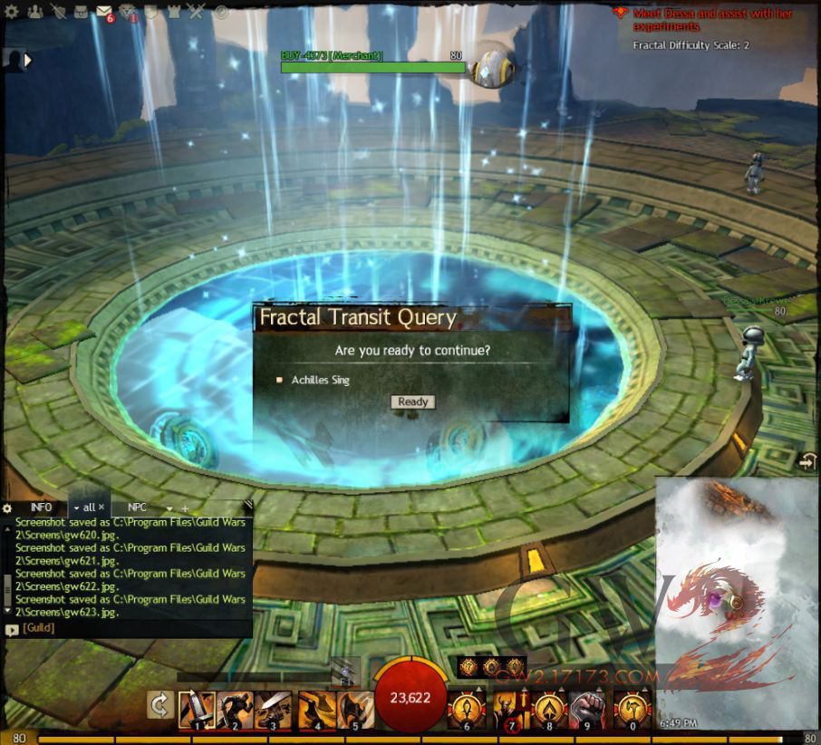 新副本迷雾碎片(Fractals of the Mists)进入的位置在狮子拱门战场传送门区上方如下图: