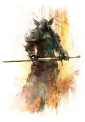 守护者是一个重甲职业,依赖着与生俱来的低级生命治疗能力。他们在战场上专注于区域控制和惩戒敌人。我们希望他们觉得自己非常强大,当他们身上充满了恩惠状态,但是当这些恩惠状态被消除后,他们将开始感到压力。他们比战士更容易消除症状控制,但是和战士一样需要在近战范围才能发挥最大伤害。
