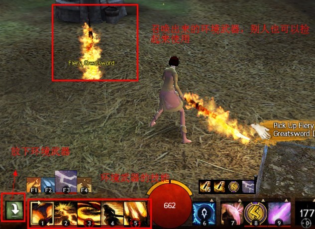 坏境武器不像普通的武器,地上的树枝、酒瓶等等很多的,捡起来就能用,用的时候有自己不同的技能(除了攻城武器召唤武器什么的一般没什么大用)。有些环境武器可以通过技能来创造出来,比如说元素的召唤魔法,和战士的旗帜技能,通常有有限的使用次数或使用时间,当它们被用光或者损坏,就不可再利用了。