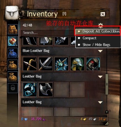 包包放不下了,东西可以随时挂交易所,不用占位置。包裹里还可以自动存仓库,取的话只有到NPC那了,或者用道具。