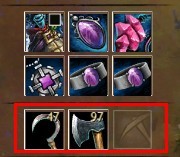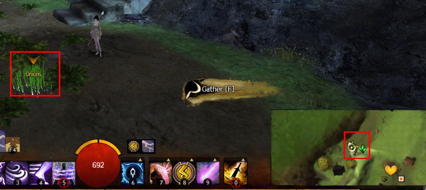 在NPC那可以买到工具,锄头挖矿,斧头砍树,镰刀挖草。地图上是作物/草药等的图标,采集之后图标消失,第2天会刷新。GW2里每个人的采集都是独立的,就是说你在这个图标这里采集了,别人也可以采集,没有影响。和拾取东西是一样的。