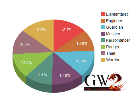 国外网站对于《激战2》服务器人物数据作出了统计,根据数据我们可以看出《激战2》游戏中8个职业的分配比例都比较平均。人类种族选择人数最多,查尔种族选择的人数最少,男性角色比较受到大家欢迎。
