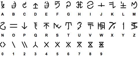 这些新科瑞塔文字随处可见,虽然直观上会让你产生“这写的什么啊”的感觉,但却不是随手乱掰的, 将这些科瑞塔文字全部解读后,你就能读懂它们的意思,以下是中文维基上的转换表。