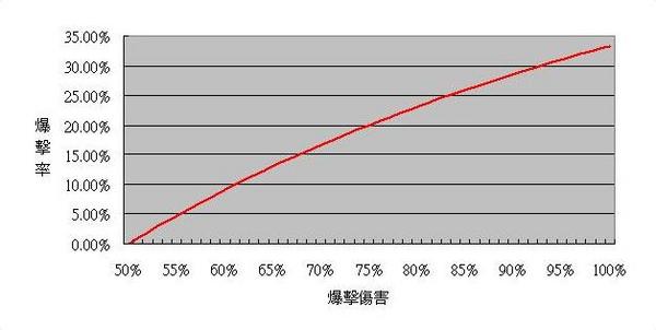 因此在爆击伤害为50%的情况下,若爆击率为0%时,每提升1%爆击率之效益才会大於提升1%伤害。