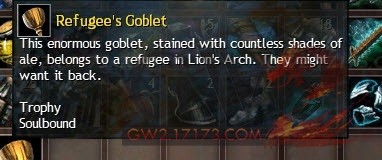 目前阶段中只能获取6个失物中的2个失物(士兵像和酒杯),其余4个项目将需要通过事件进展才能解锁。难民营地在狮子拱门慢慢壮大,到时候将会有更多的难民需要你的帮助。