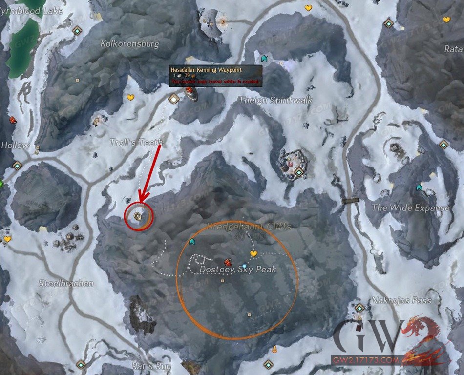 所在地图: Dredgehaunt Cliffs地图的中部,Dostoev Sky Peak的西北入口
