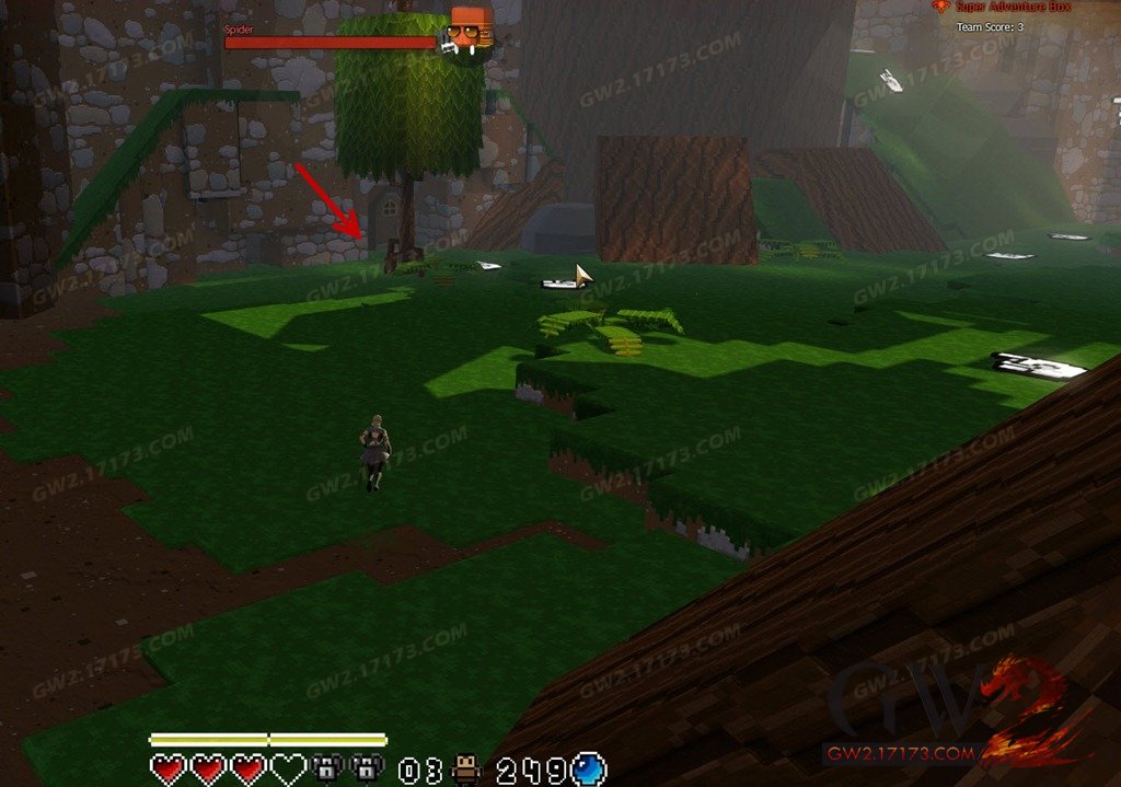 17.收完这个6个小装饰品后,跳到地上,再次经过检查点2。这次不要去爬那颗大树,相反去抓取地上的两个小装饰品。西边的隐藏商店中有一个,隐藏商店的右侧可以获取另外一个。