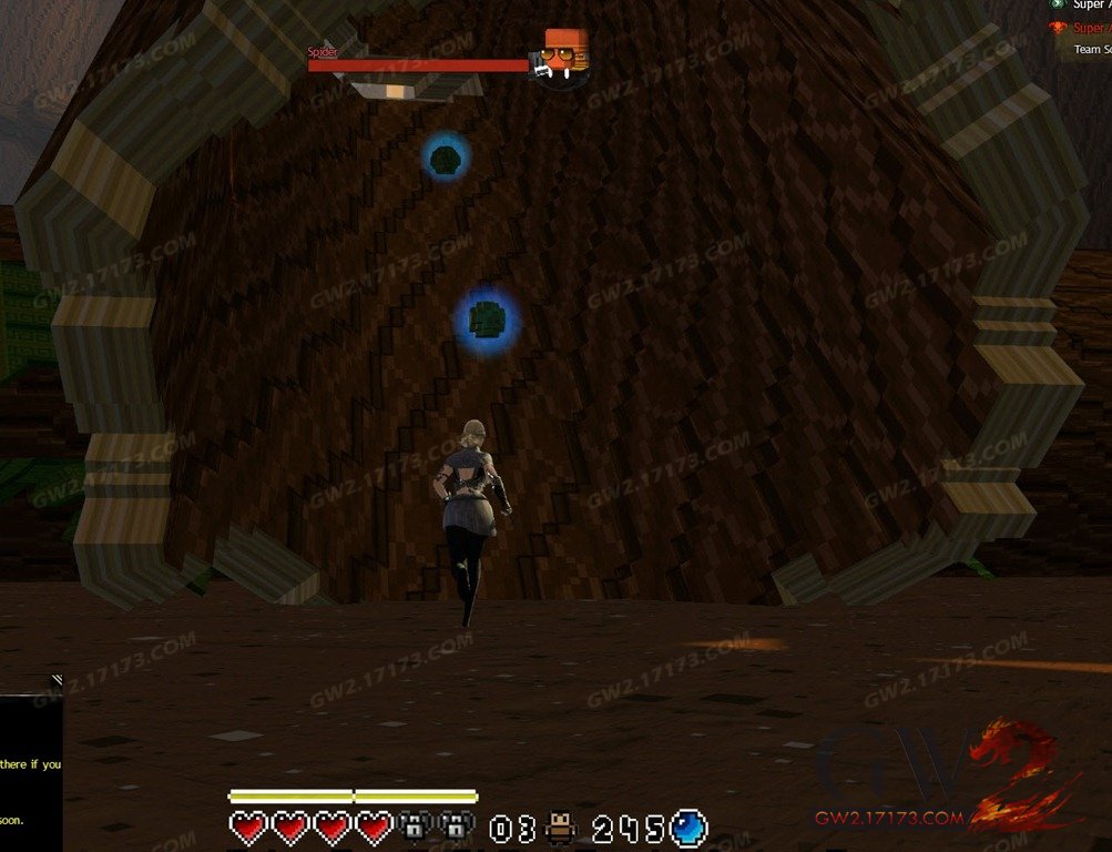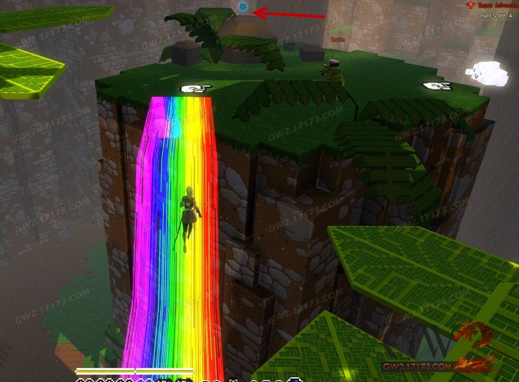 2.收集满上面的8个小装饰品后,到尽头左边找到一个瀑布。这里有一个隐藏房间,可以发现道具“炸弹”。你还可以用铁铲挖取瀑布来获得两个红色的小装饰品,这里总共能获得40个小装饰品。注:铁铲可以在超级冒险盒世界中的商人处购买。