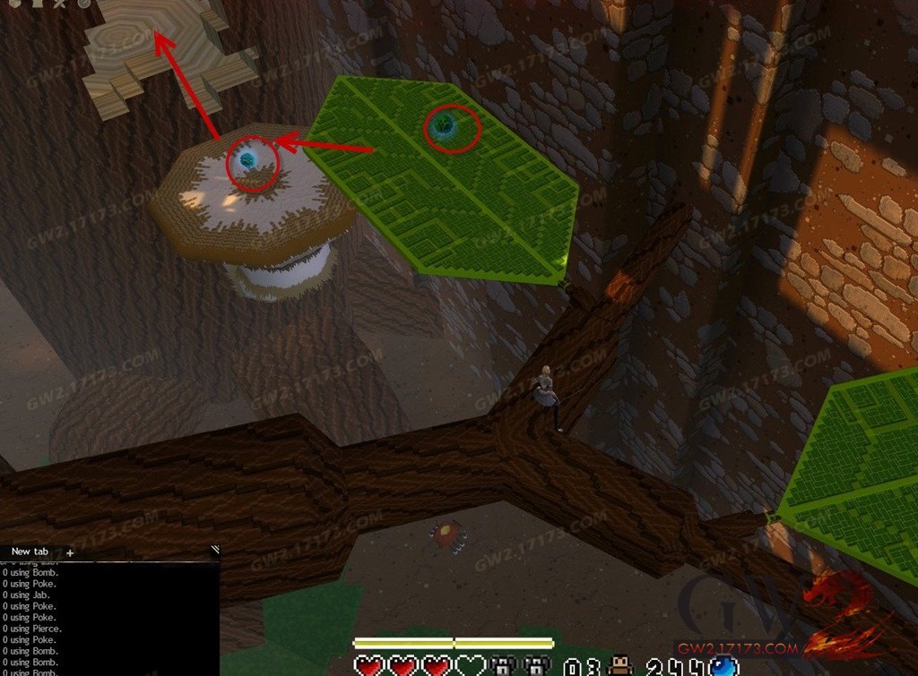 1.天上有8个小装饰品,你需要靠弹性蘑菇来抓取它们。对于最顶端的小装饰品,你必须先靠弹性蘑菇爬上这个树木。