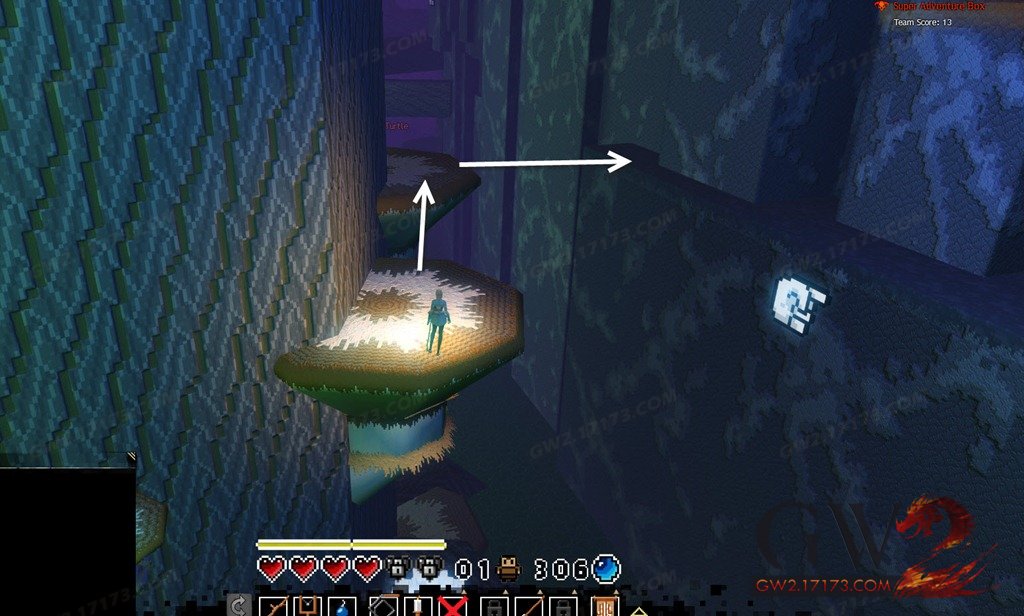 这里的间隙非常宽,你需要按照这个箭头方向来走。