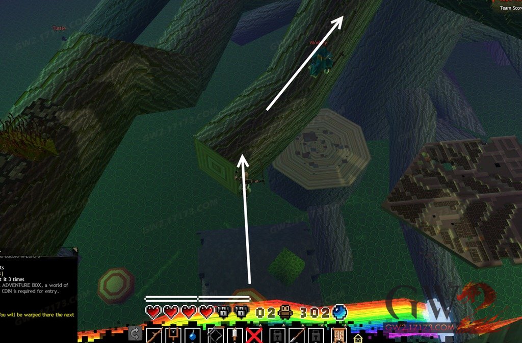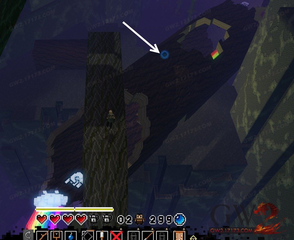 8.从倾斜的树干处转身,你可以看到一个垂直的主干和一些木头。朝这个方向走,通过一些跳跃你将可以获得10个小装饰品。