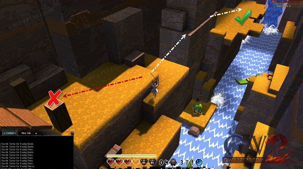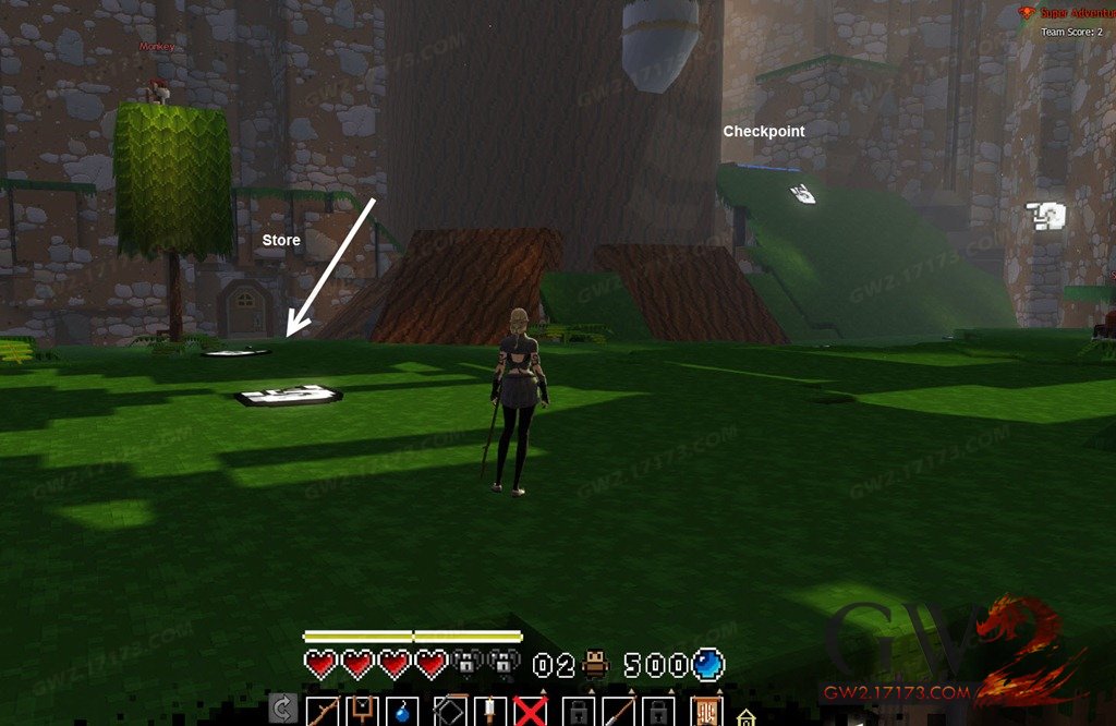 1.检查点1和2之间,有箱子的的山顶之上。在这座山上,你可以通过2条跳跃线路获得70个小装饰品。走左边的黄色线路,将可以获得3个+10的小装饰品。右边的白色线路你可以挖到2个+20的小装饰品。加起来一共70个小装饰品。
