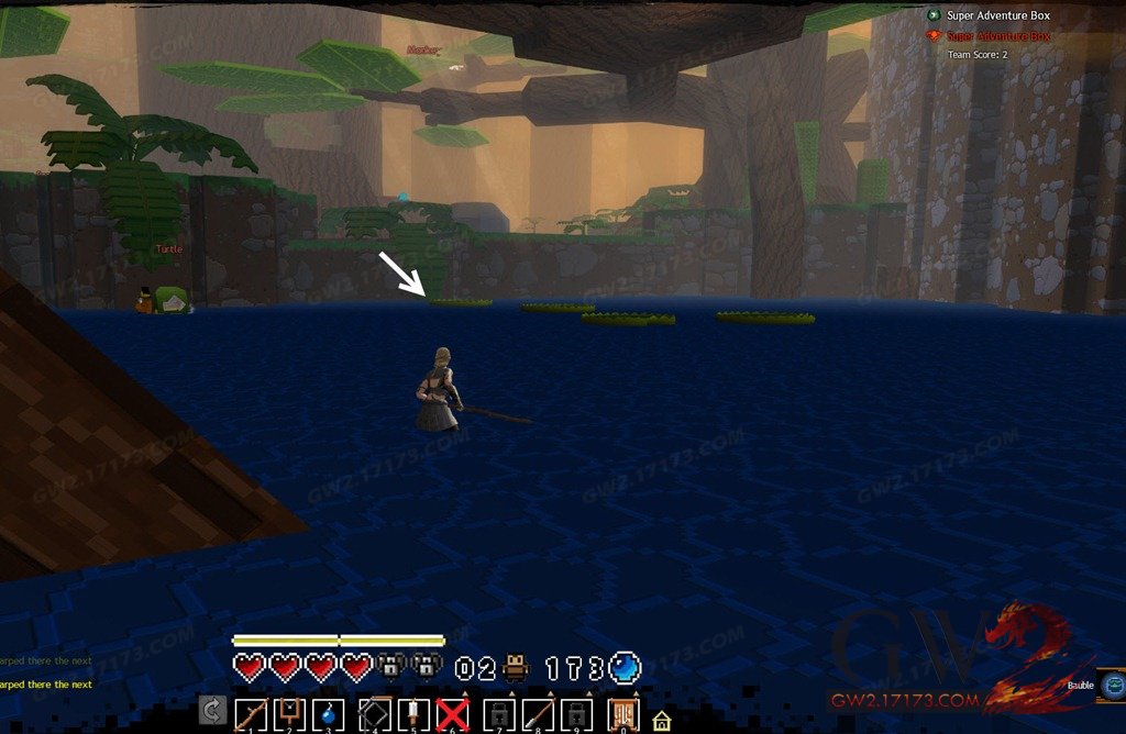 2.到达有乌龟和鳄鱼的第二条河,朝着下面的指示走别走错了。这里你可以发现30个小装饰品。之后别急着离开,河对面有另外一个挖掘点。