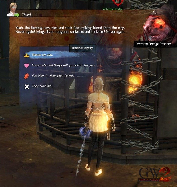 在黑烟城堡的栅栏区你也可以找到一个囚犯,它将会有一些融熔联盟的辩词。