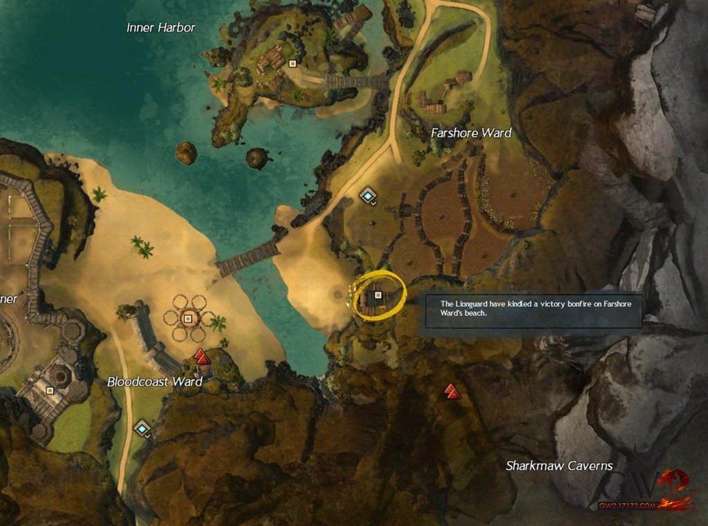 去狮子拱门、霍布莱克或者黑烟城堡的胜利篝火处可以获得一个火焰召集的成就。点击篝火还能获得一个持续1小时的BUFF,给你的角色增加10%所有属性、+20%掉宝率、+20%击杀经验。