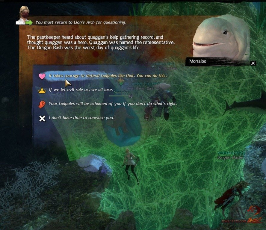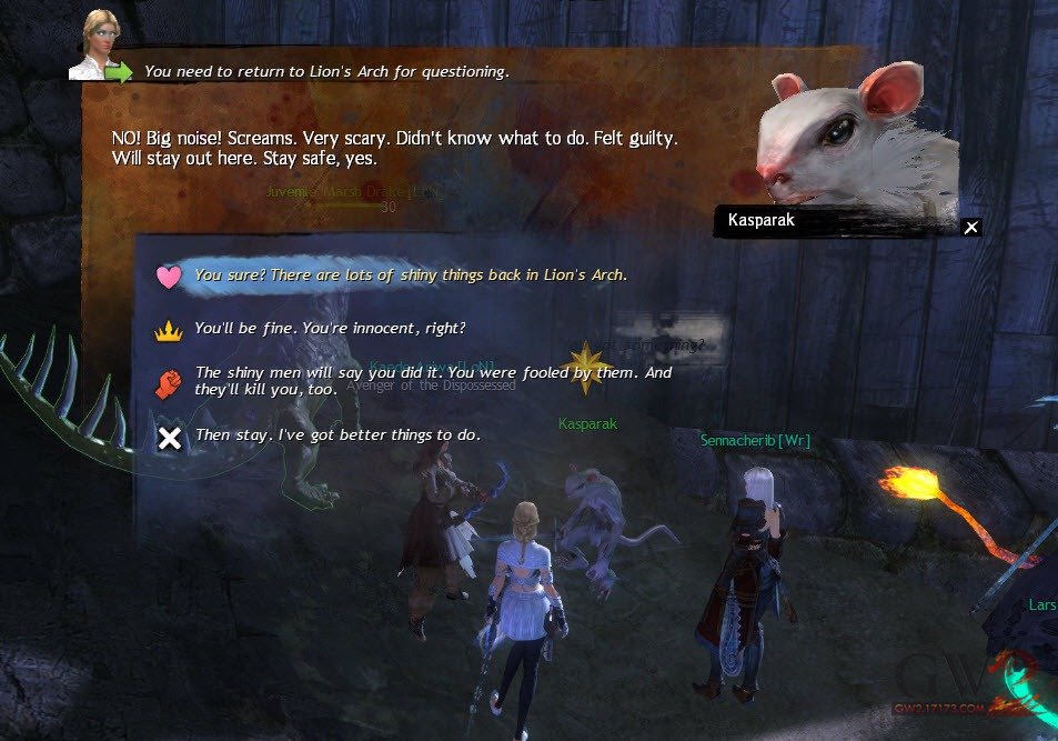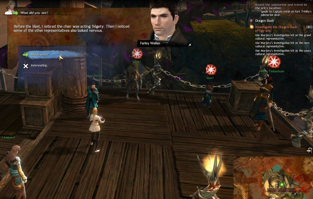 想要开始任务你必须先访问位于人类主城神域之城东南部的尽头酒吧,在那里与Marjory Delaqua对话。然后返回狮子拱门广场找巡查官艾伦基尔对话,开启一个单人剧情副本。