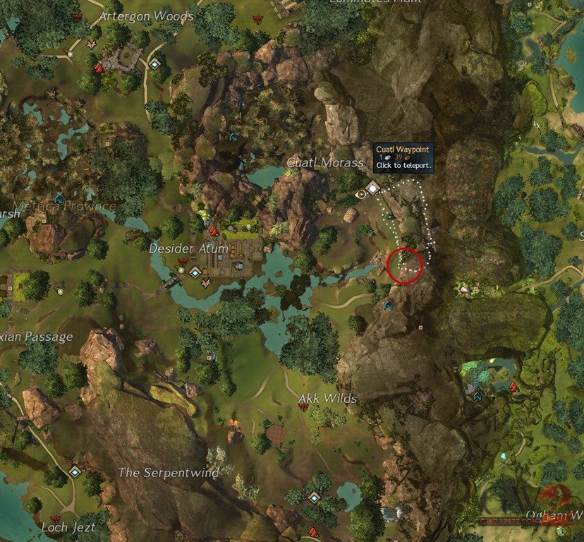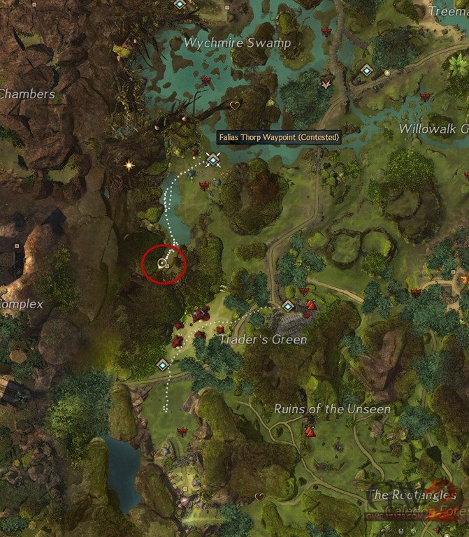 这个隐藏点位于WVW地图,你必须跳过一系列的跳跳乐才能到达。当然如果有一个幻术师能帮你就简单的多。