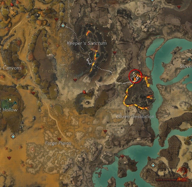 寻找位于Fireheart Rise地图的隐藏实验室,中等难度。