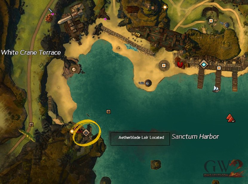 当你登陆激战2时,将会收到艾伦基尔发来的邮件,提示你已经被委任去追捕以太之刃海盗。标记出位于狮子拱门的新增活动副本。