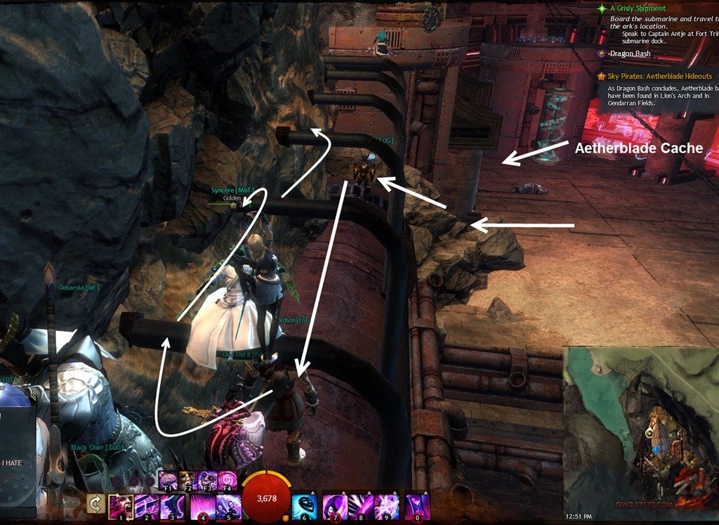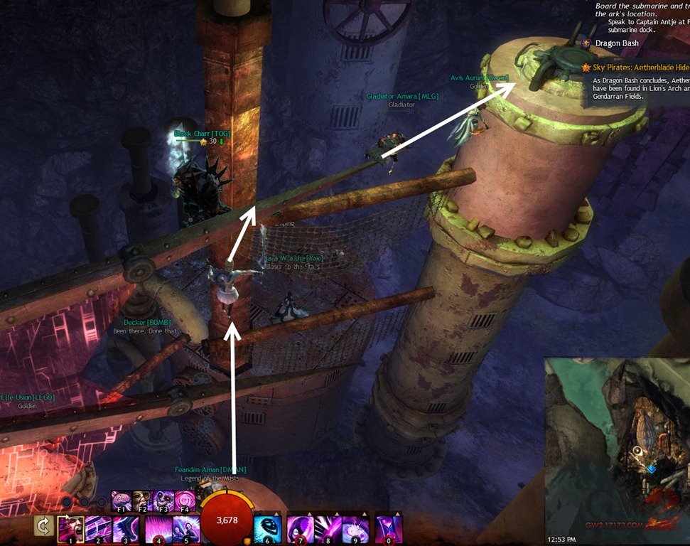 《激战2》泰瑞亚天空强盗版本在7月2日加入了一个新的跳跳乐解谜点-以太之刃没有秘密(Not So Secret Aetherblade ),这个跳跳乐解谜点在版本介绍后成为了永久存在的内容,今天就为大家介绍这个跳跳乐解谜点的跳法攻略。