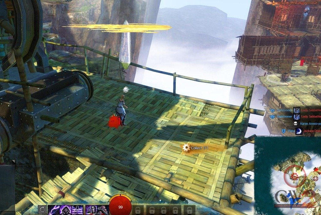 地图中可以看到标记,它们将为使用对应技能的玩家开启捷径。比如在图中左侧就有一处对应太阳技能的标记,右侧则是风技能标记。带有对应技能的玩家可以使用5号技能激活这些捷径。