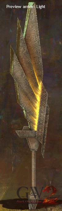 《激战2》女王周年庆版本中新增的至尊武器皮肤预览,你可以在神佑之城的皇冠展馆找不同使者购买,购买他们需要花费一个节日恩典+一些金币。