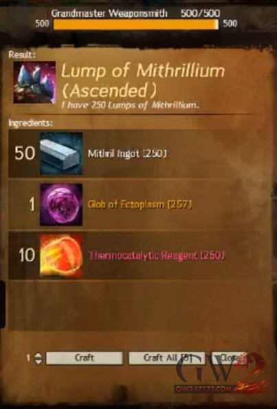 -Lump of Mithrillium 配方(50 Mithril Ingot, 1 Glob of Ectoplasm, 10 Thermocatalytic Reagent)