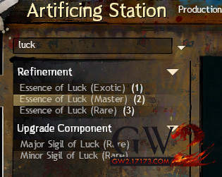 如果你的配方列表太多可以输入“LUCK”来快速找到幸运精华制作。