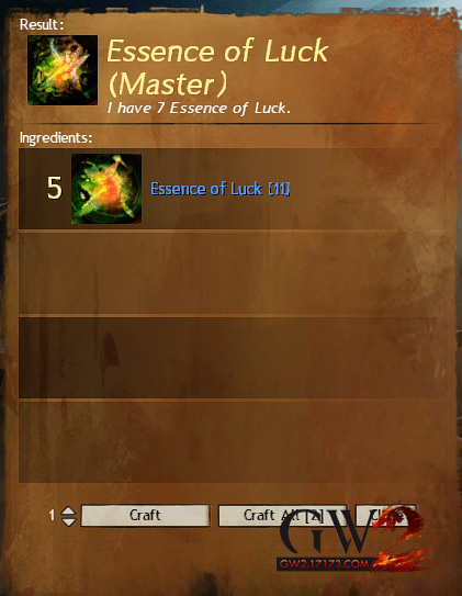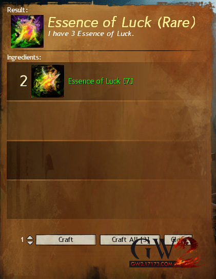 其实很简单,你只要先学习手工艺技能——发明家(artificer),1级技能就可以了。然后通过发明家你就可以将蓝色幸运精华合成绿色幸运精华,将绿色幸运精华升级成黄色幸运精华,而且这个合成还不用配方,大大加快你使用幸运精华的速度。