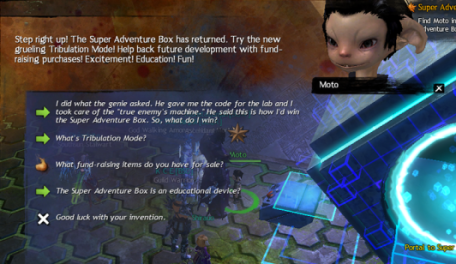随着《激战2》超级冒险盒的回归,其实A社又给我们带来了一些伏笔。在本次版本中,阿苏拉主城拉塔索姆其实隐藏了一个关于超级冒险盒的剧情。来看看Motto设计的学习装置背后的故事吧。