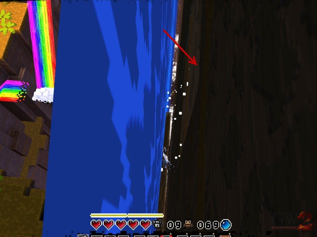 隐藏房间11:在瀑布原木区有一个隐藏房间,打开它你需要用到炸药。它在第二个弹跳蘑菇的略高处。站在原木上,调整你的角色视角,这样你可以看到瀑布后面的墙壁。对着看上去有一些不同的墙壁丢炸弹。